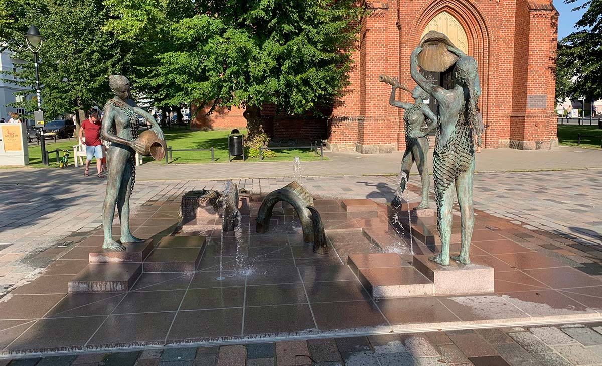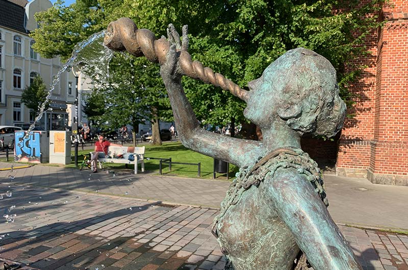 Daraus entstanden auch die Sockel für die Nereiden und die abgelegten Insignien des Meeresgottes Neptun auch als Poseidon bekannt. Neben den Nereiden kann man nämlich den Dreispitz, ein Netz, einen Fisch sowie Sandalen des Poseidon finden.