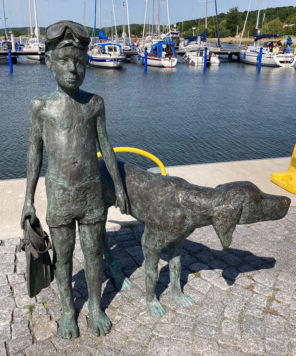 Plastik - Junge mit Hund hat eine Höhe von 130 cm, Bronze